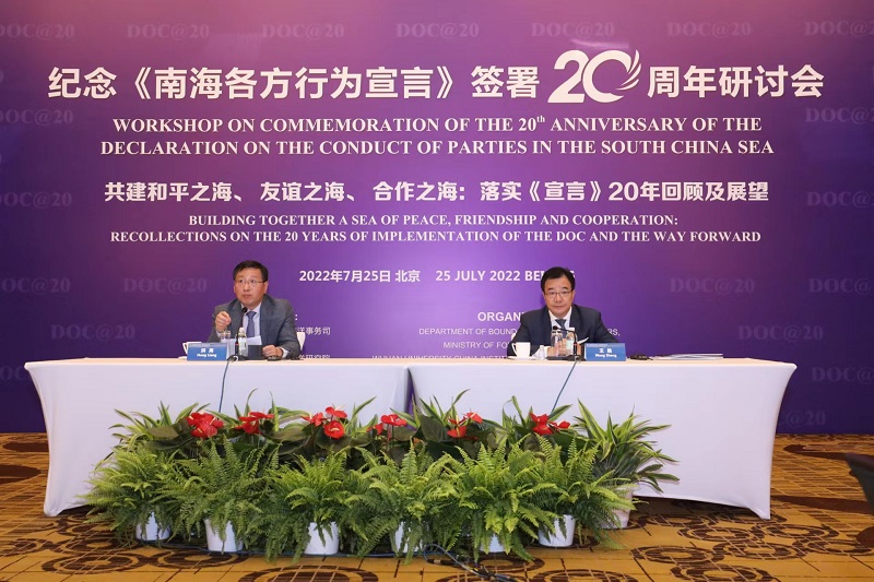 7月25日, 外交部、武汉大学中国边界与海洋研究院、中国南海研究院在北京共同举办纪念《南海各方行为宣言》签署20周年研讨会。
