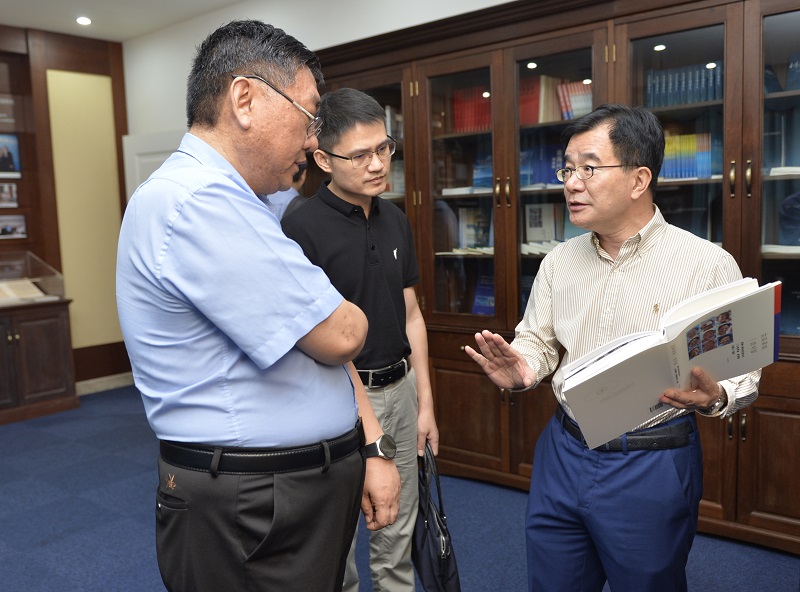 10月30日,新华社研究院院长刘刚一行4人来访我院,院党组书记、院长王胜陪同参观交流。双方就高端智库建设、舆论和话语权建设、南海问题研究等议题进行了探讨。