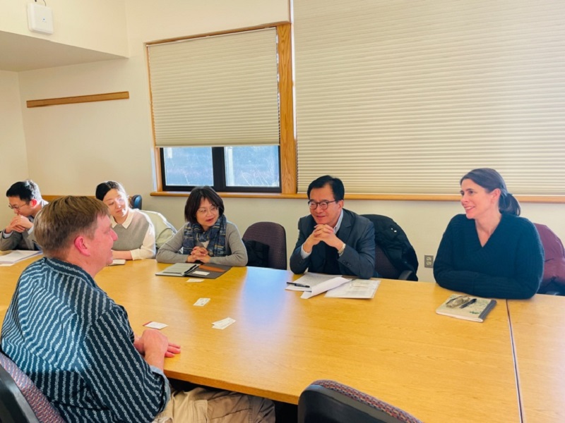 12日下午,王胜一行访问了帕迪拉湾国家河口研究保护区暨太平洋西北地区蓝碳工作组,与保护区主任裘德·阿珀、教育协调员苏珊·伍德围绕海洋环境保护、海岸带生物资源养护和蓝碳相关政策措施进行交流,并参观工作组海洋生物资源养护实验室。