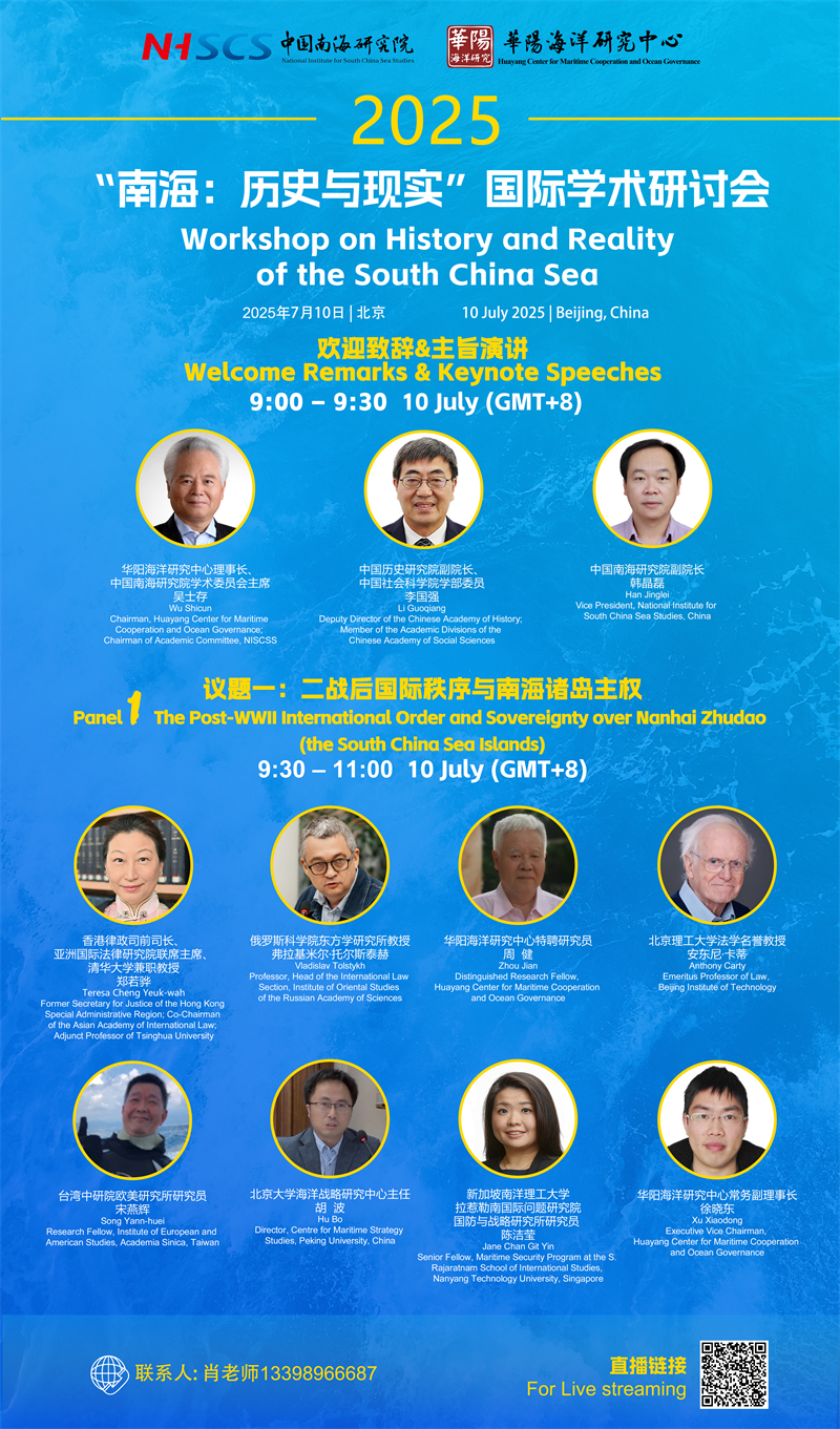我院将与华阳海洋研究中心于2025年7月10日在北京联合举办“2025年‘南海:历史与现实’国际学术研讨会”。...