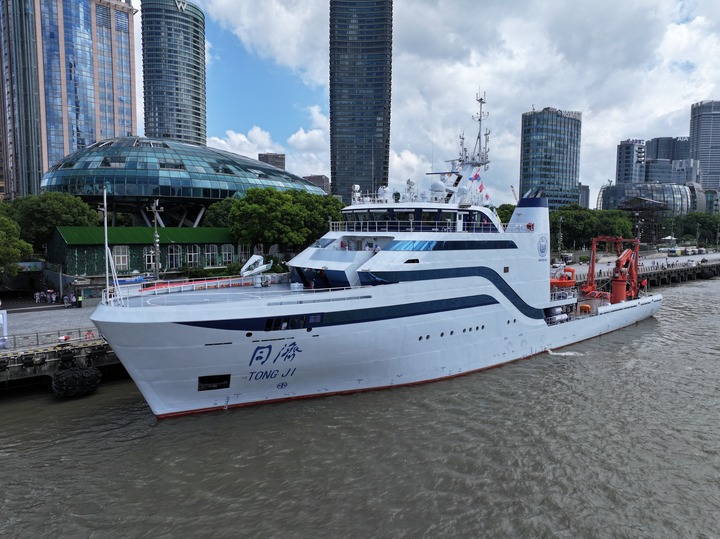 中国首艘海洋级智能科考船“同济”号正式交付(新华社)