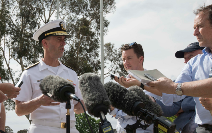 美国海军作战部长理查森上将于2018年11月1日在澳大利亚访问期间接受记者采访 图源:美国海军
