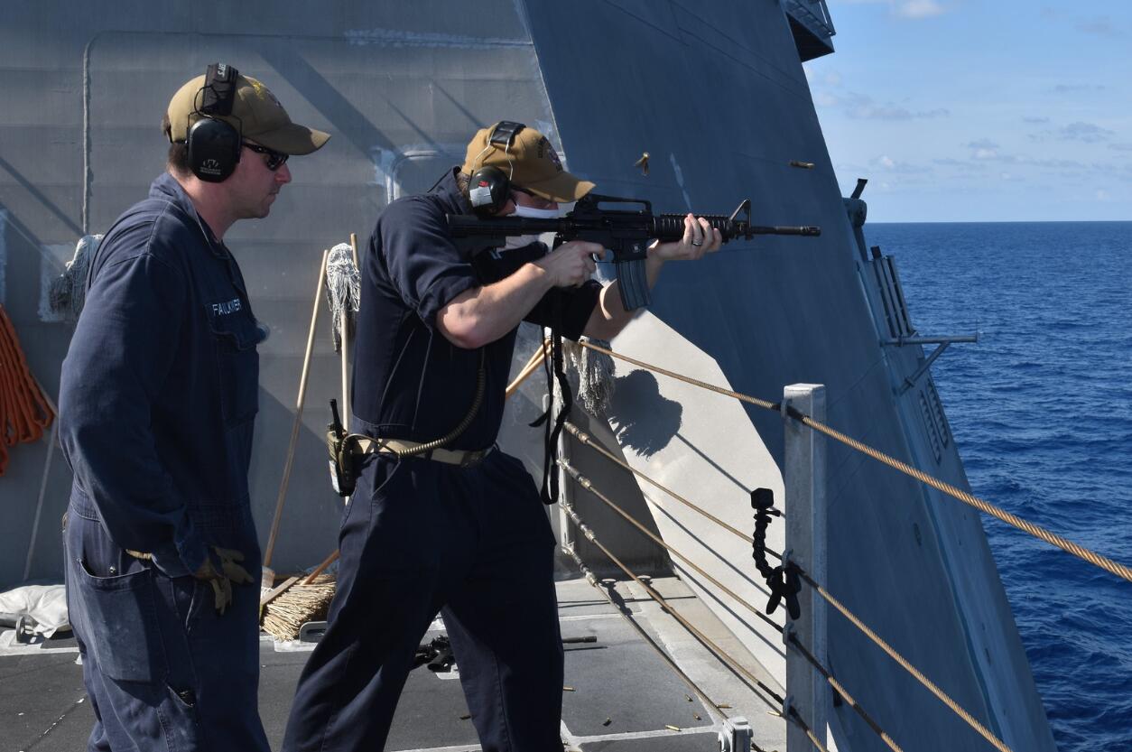 “蒙哥马利”号濒海战斗舰舰员进行射击训练