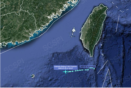 “南海战略态势感知计划”平台大部的7月23日美军P-8A反潜巡逻机飞行路线