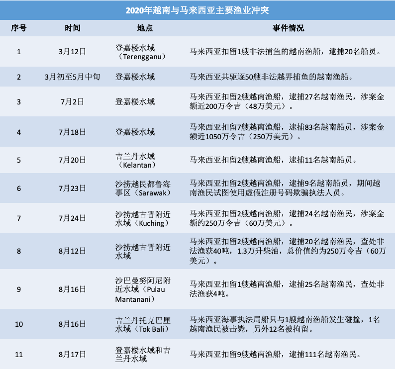 2020年以来,针对大量越南渔船非法越界捕鱼行为,马来西亚执法当局措施趋于强硬,两国渔业冲突不断升级。