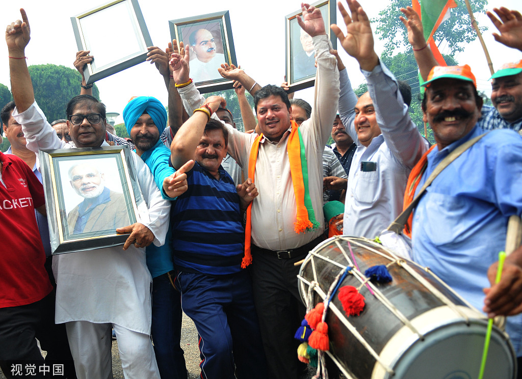 印度民众庆祝取消克什米尔特殊地位后 @视觉中国