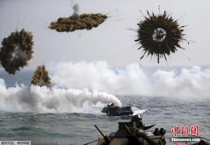 当地时间2015年3月30日,韩国浦项市,韩美军队举行联合登陆演习。