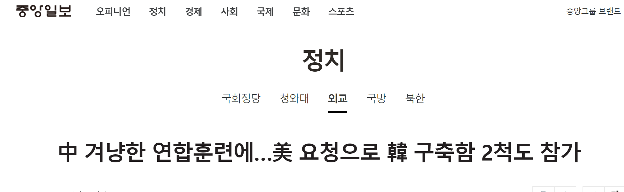 《中央日报》:针对中国的联合军演...应美国邀请,韩国两艘驱逐舰也参加演习