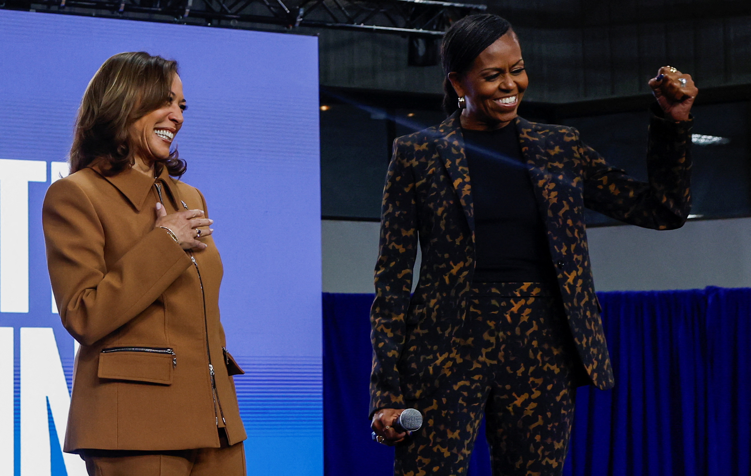 10月26日,米歇尔·奥巴马(右)与卡玛拉·哈里斯一起出席竞选活动(路透社)