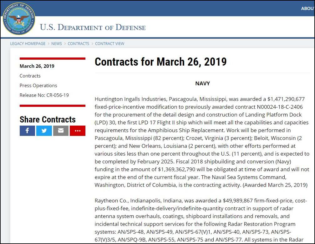 2019年3月26日,美国国防部合同(图源:美国国防部)
