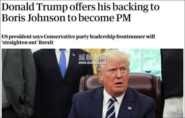 美国总统特朗普19日在白宫接受媒体采访时,也表示自己支持鲍里斯当选英国首相,还称只有他才能“搞定脱欧(straighten it out)”。