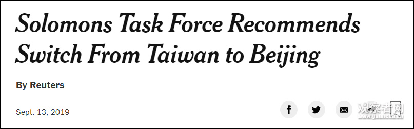 为重审和台当局间的“关系”,所方在今年6月派特别代表团访华,沿途拜访和中国建交的岛国,考察情况。本月13日报告出炉,结果建议所方和台当局“断交”,并指出“转换关系”对所罗门群岛来说有“很大好处”。