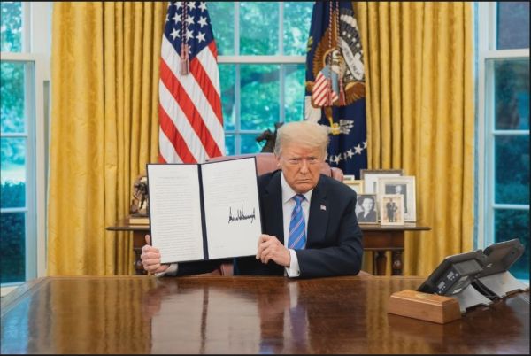 特朗普26日在白宫展示旨在保护美国公共纪念物的行政令(美国白宫网站)