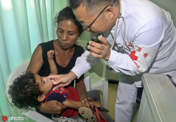 当地时间2017年12月15日,东帝汶帝力,中国海军医生在中国海军“和平方舟”号医院船上为当地人提供医疗服务。图片来源:IC Photo