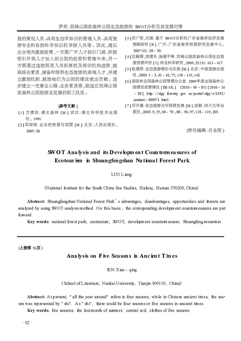 双峰山国家森林公园生态旅游的SWOT分析及其发展对策